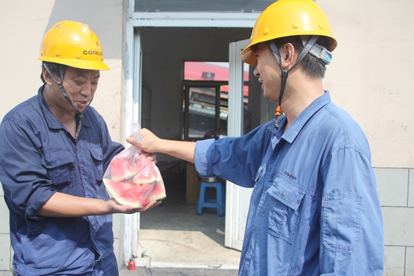 ? ? 一是定期組織開展現(xiàn)場夏季送清涼活動。統(tǒng)一購買了西瓜、人丹等防暑降溫用品發(fā)放至每位員工,給一線員工送上夏日的清涼。