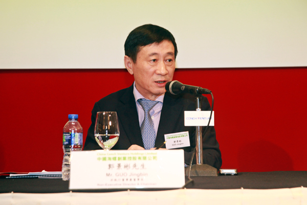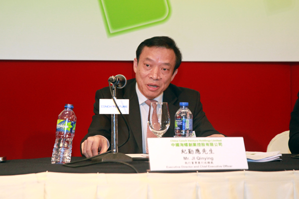 On 1 April 2014, Conch Venture presented its 2013 annual results in Hong Kong island Shangri-La hotel, chairman Mr Guo Jingbin, execuitve director and general manager Mr Ji Qinying, company secretary Mr Shu Mao and deputy director of financial department Mr Chen Xingqiang attended the meeting. This is the first roadshow since company got listed on 19 December last year, which attacted much attention. Almost 138 investors and analysists attended the meeting where no one empty seat was left.